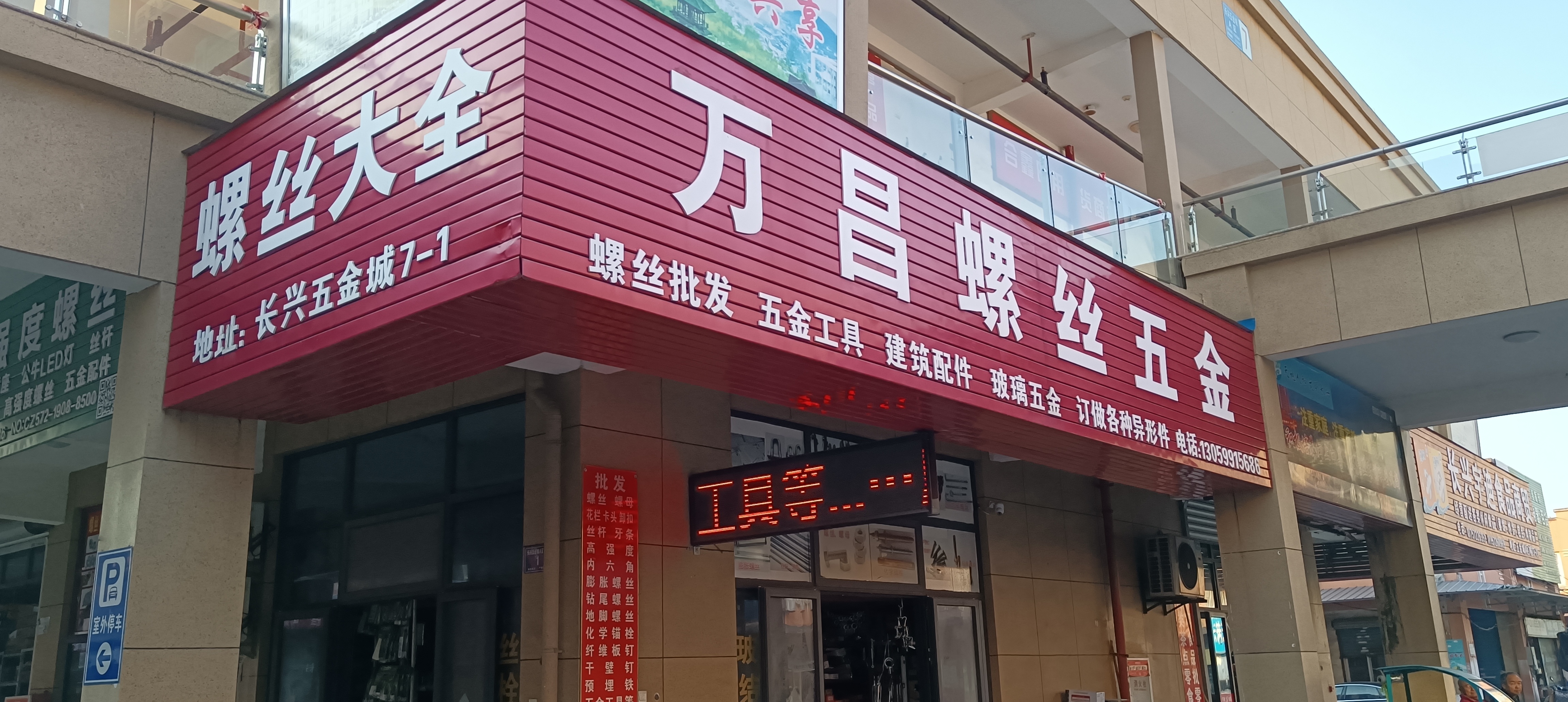 店铺地址:位于长兴五金城A区7号楼1号商铺